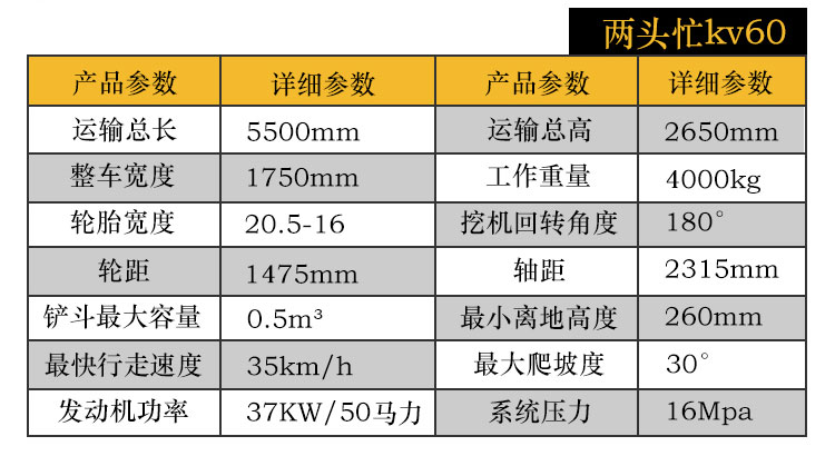 工作重量:4000kg運輸總長:5500mm發動機功率:37kw